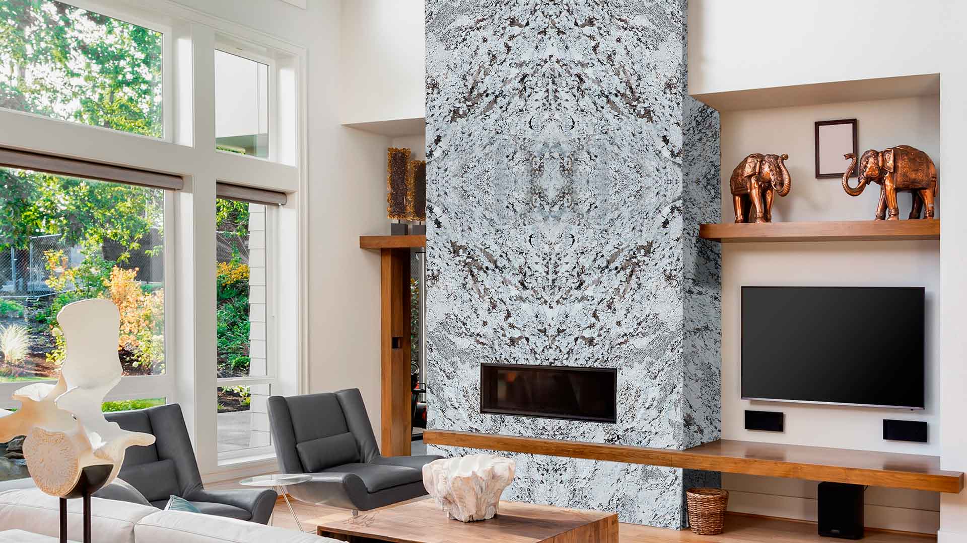 Crafted from solid natural granite, this fireplace combines rugged durability with refined aesthetics. Resistant to high temperatures and scratches, its speckled or crystalline patterns add earthy elegance to living rooms or outdoor patios. Customizable in finishes like Absolute Black or Baltic Brown for rustic or modern settings.