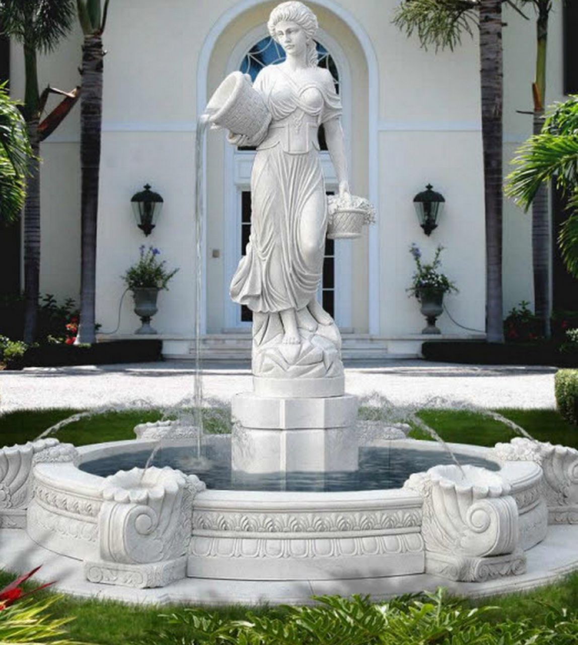 A marble fountain transforms gardens or courtyards into serene retreats. Its self-circulating water system and intricate carvings create soothing sounds and visual appeal. Designed for durability in all seasons.