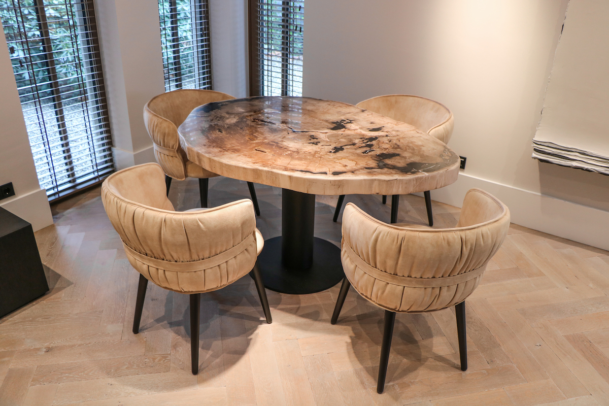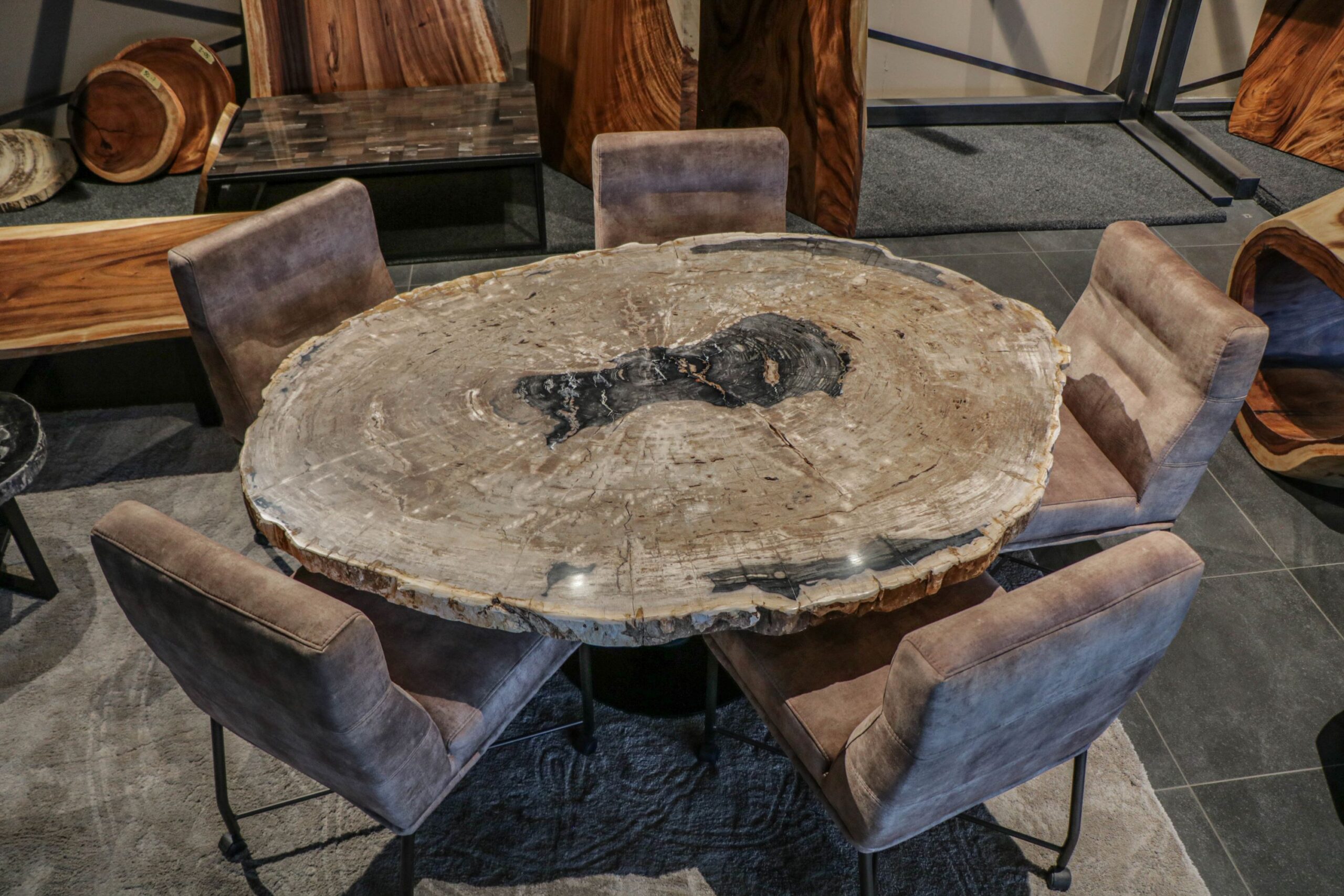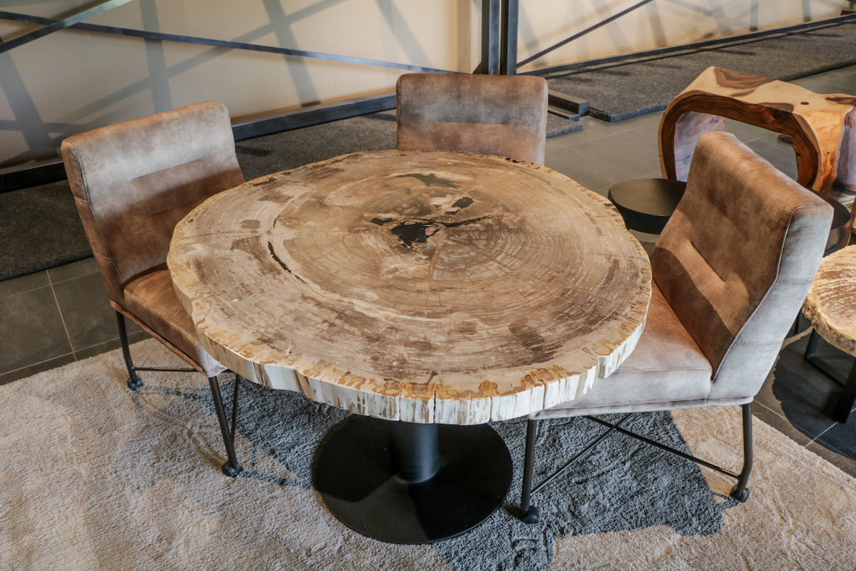 Merging museum-grade paleontology with functional design, these pieces anchor spaces from industrial lofts to Zen gardens, turning daily meals into tactile encounters with deep time.